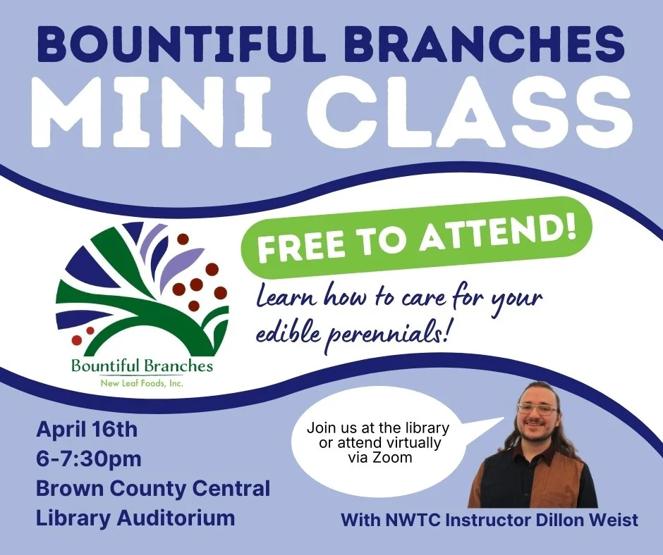 If you're planning to purchase a food-producing plant from New Leaf Foods Bountiful Branches Sale, this mini class is for you! Learn the basics of how to plant and care for your new plants. Taught by Dillon Weist, manager of the Bounty Garden for the Sustainable Food and Agriculture Systems associate degree program, at NWTC. You can also attend virtually via zoom if you can’t make it live.